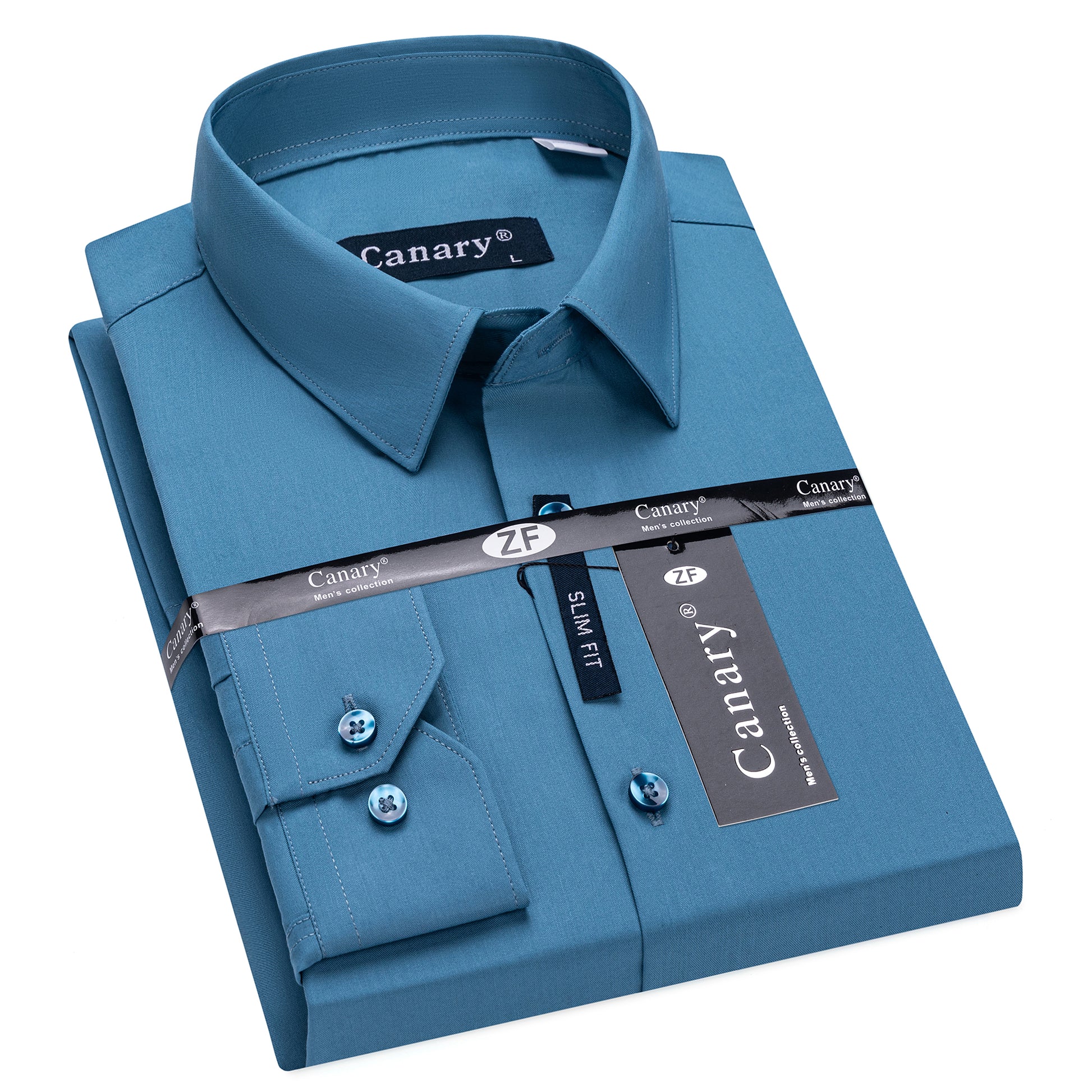 Rugalmas hosszú ujjú kék karcsúsított férfi ing